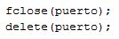 Lo último que se hace dentro de esta función creada en MATLAB es cerrar y borrar el puerto mediante los comandos fclose y delete tal como se puede ver a continuación.